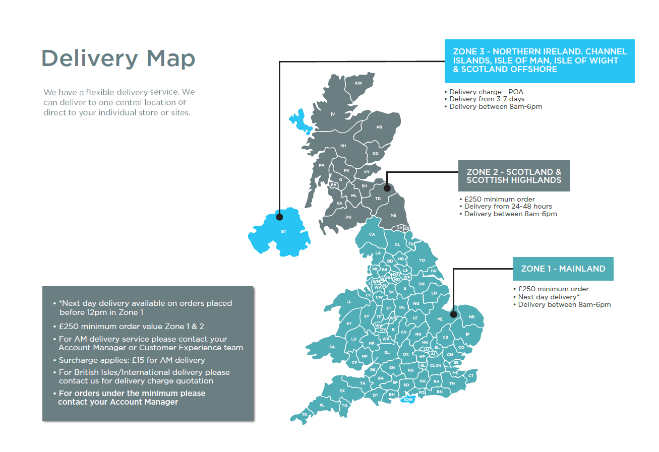 - £250 Online Minimum Order Value for Zone 1 & Zone 2
